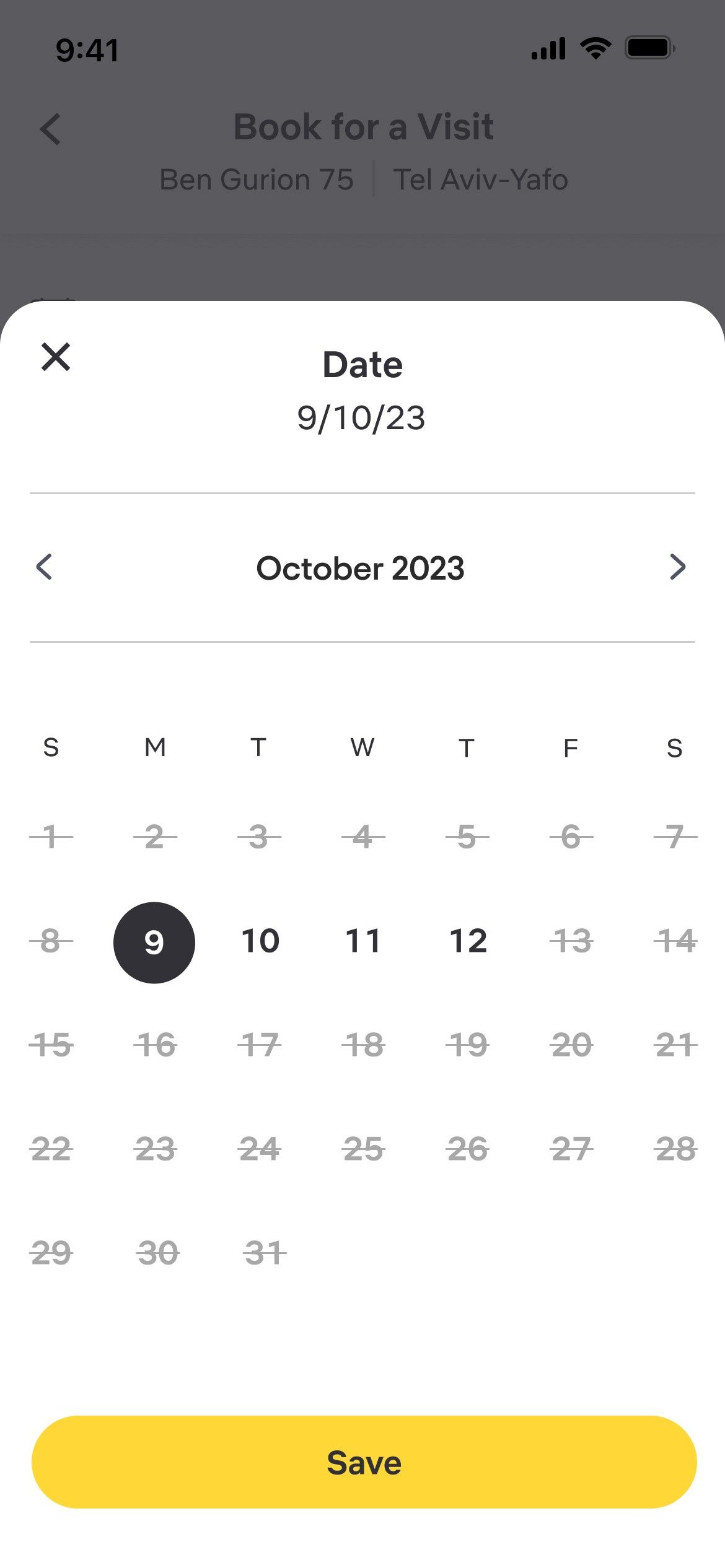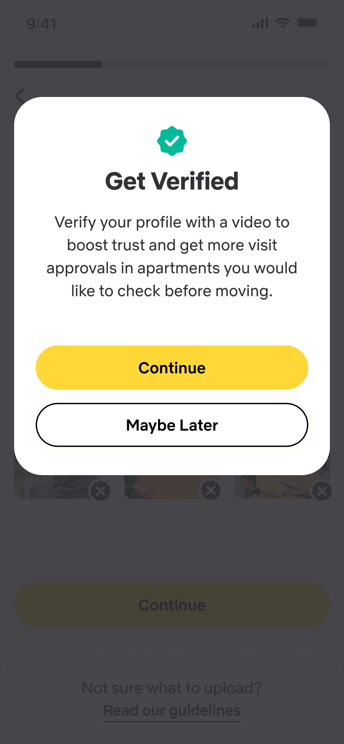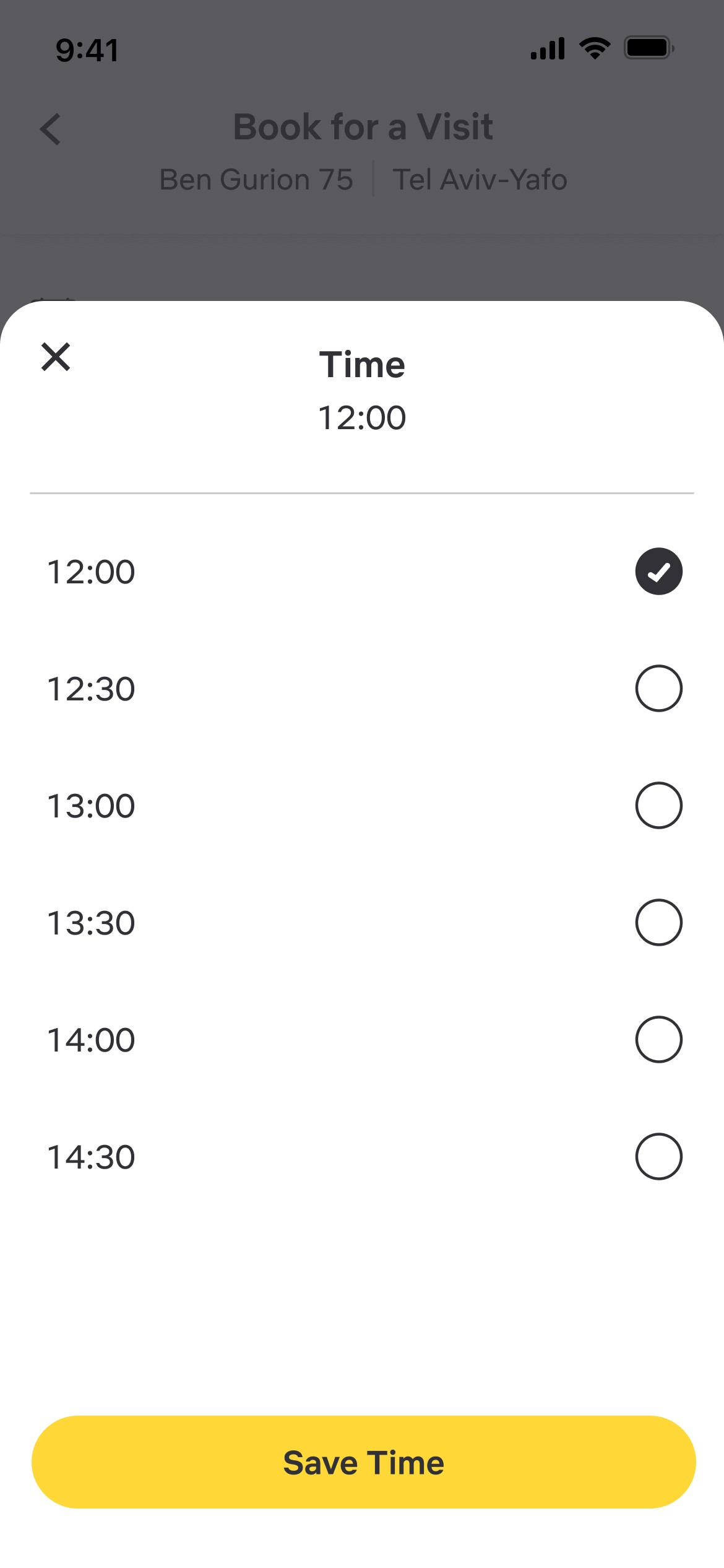 Visits to the apartment require the user to select a time, date, and self background (optional).