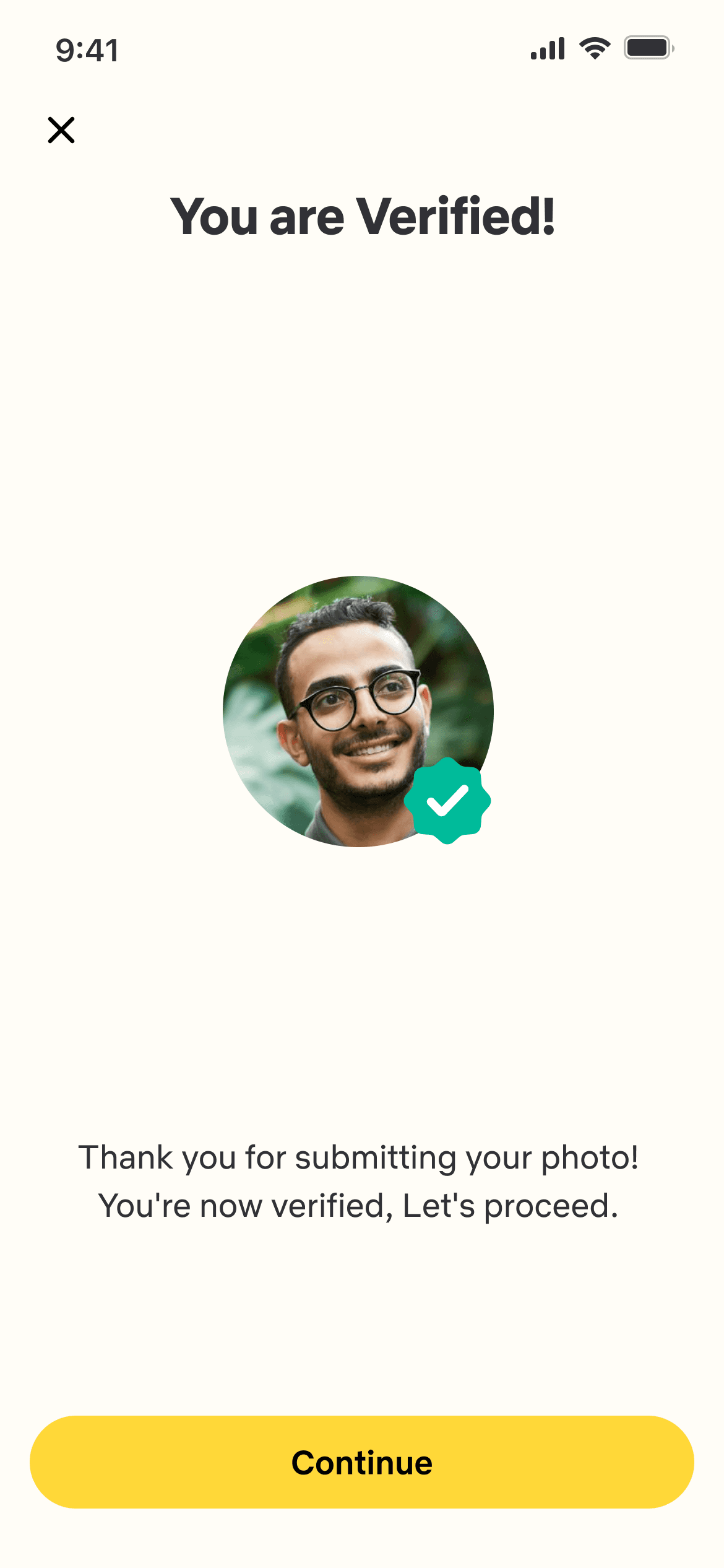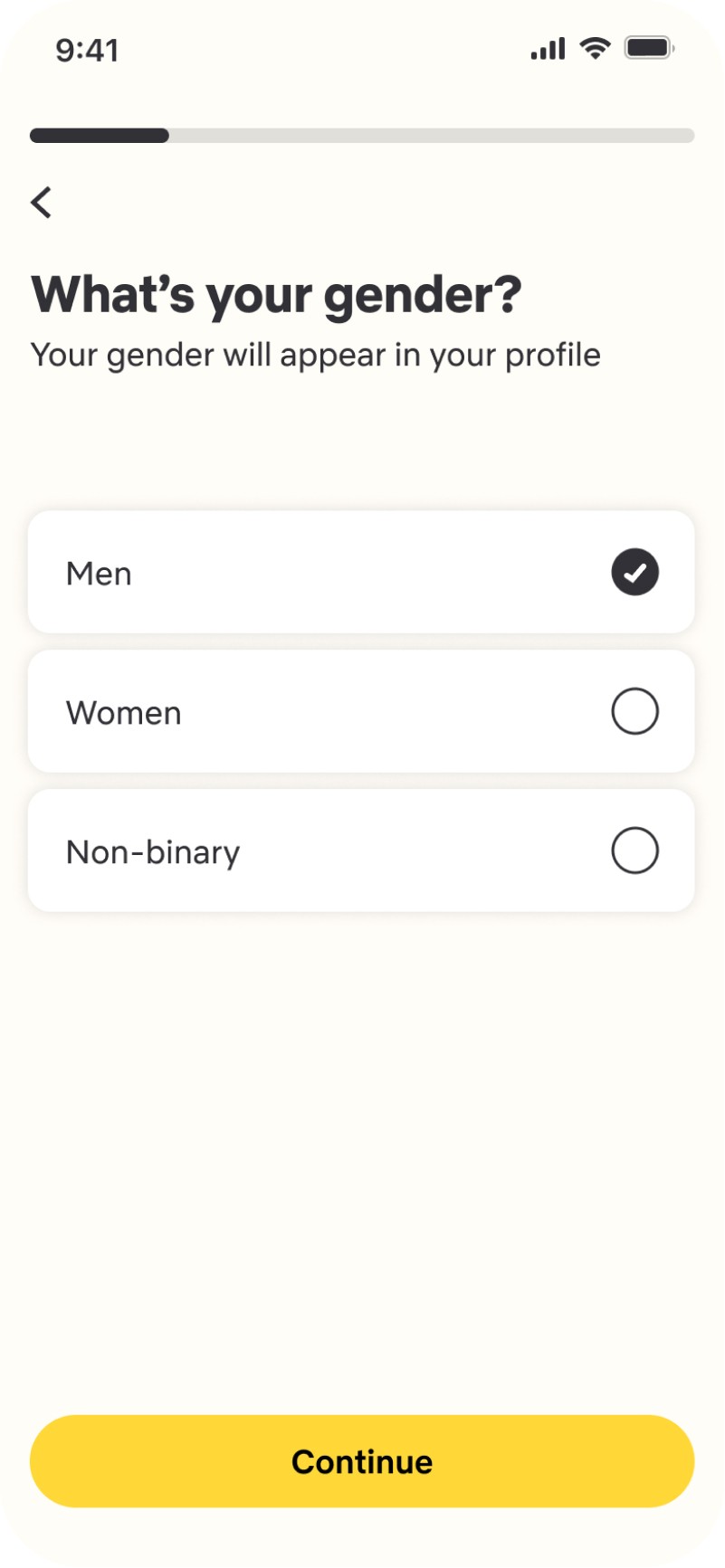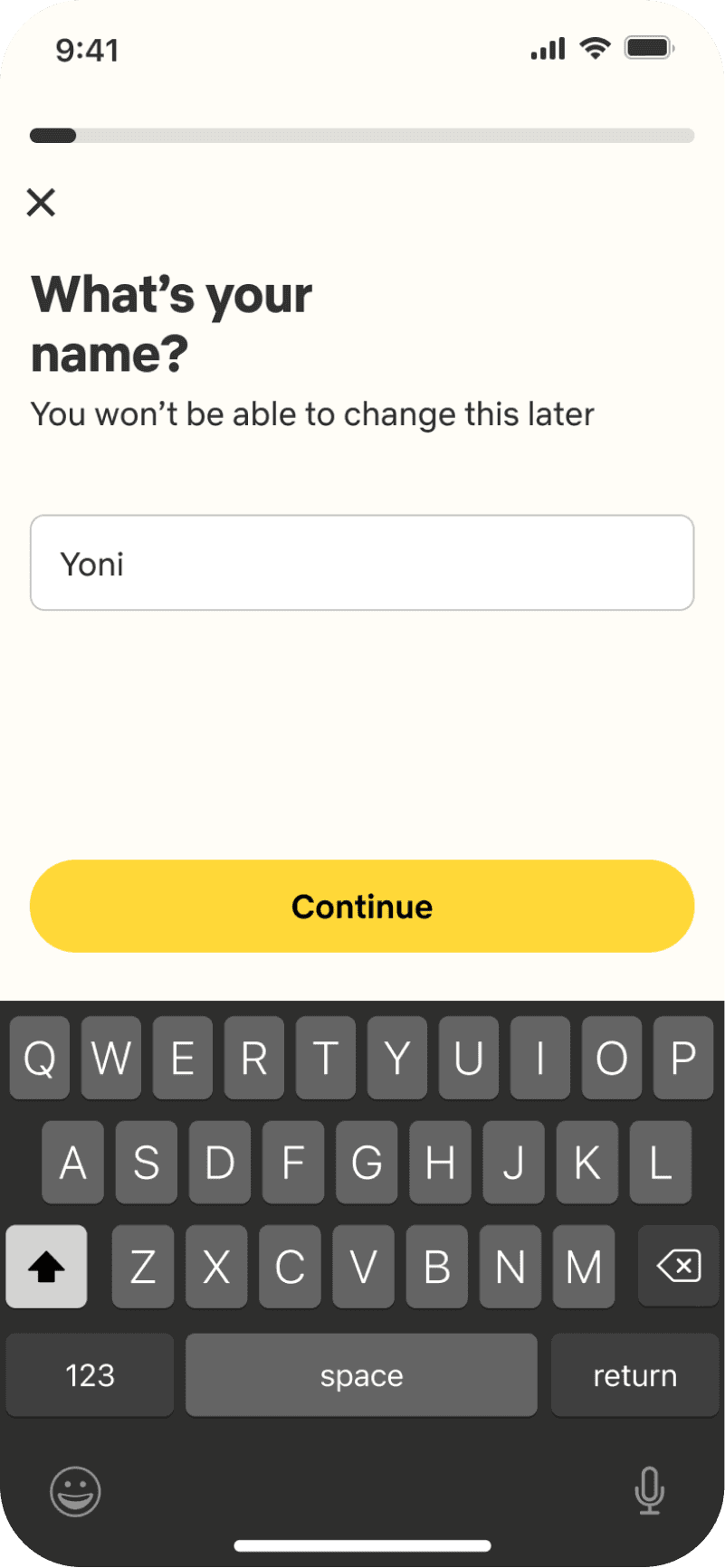 The onboarding includes a verification procedure in which he is asked to enter his phone number and add additional details such as name, gender and photos.